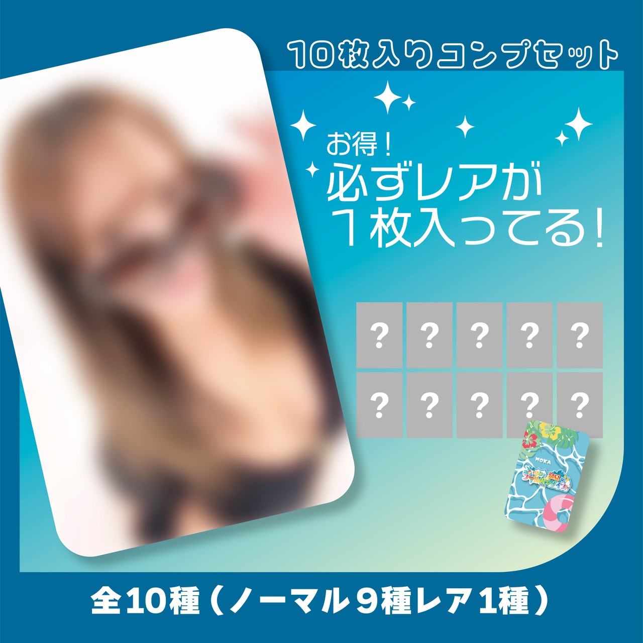 全10種(ノーマル9種・レア1種)全ての絵柄が入っているトレカセットになります。