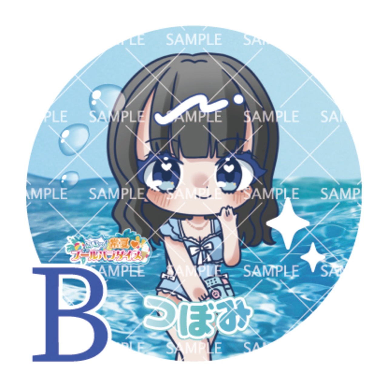 「どきっ!常夏♡プールパラダイス」の缶バッジです。