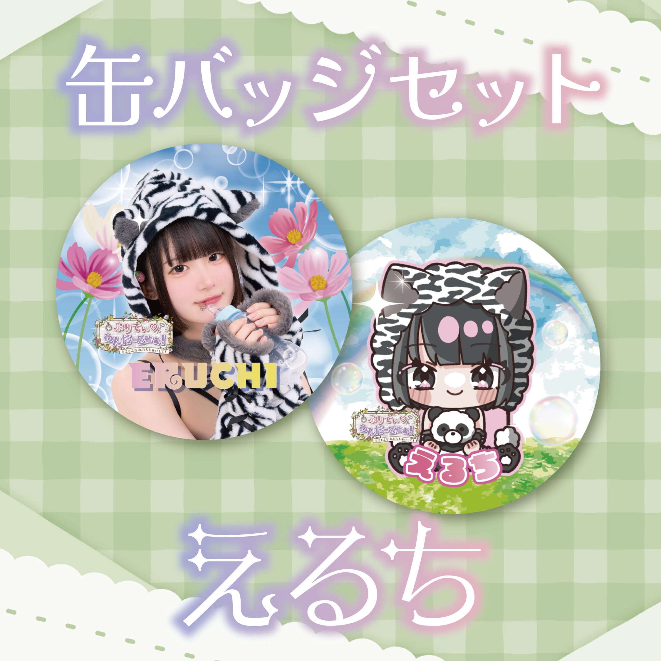 「ぷりてぃ♡わんだーZOO!」の缶バッジ2種のセット商品です。