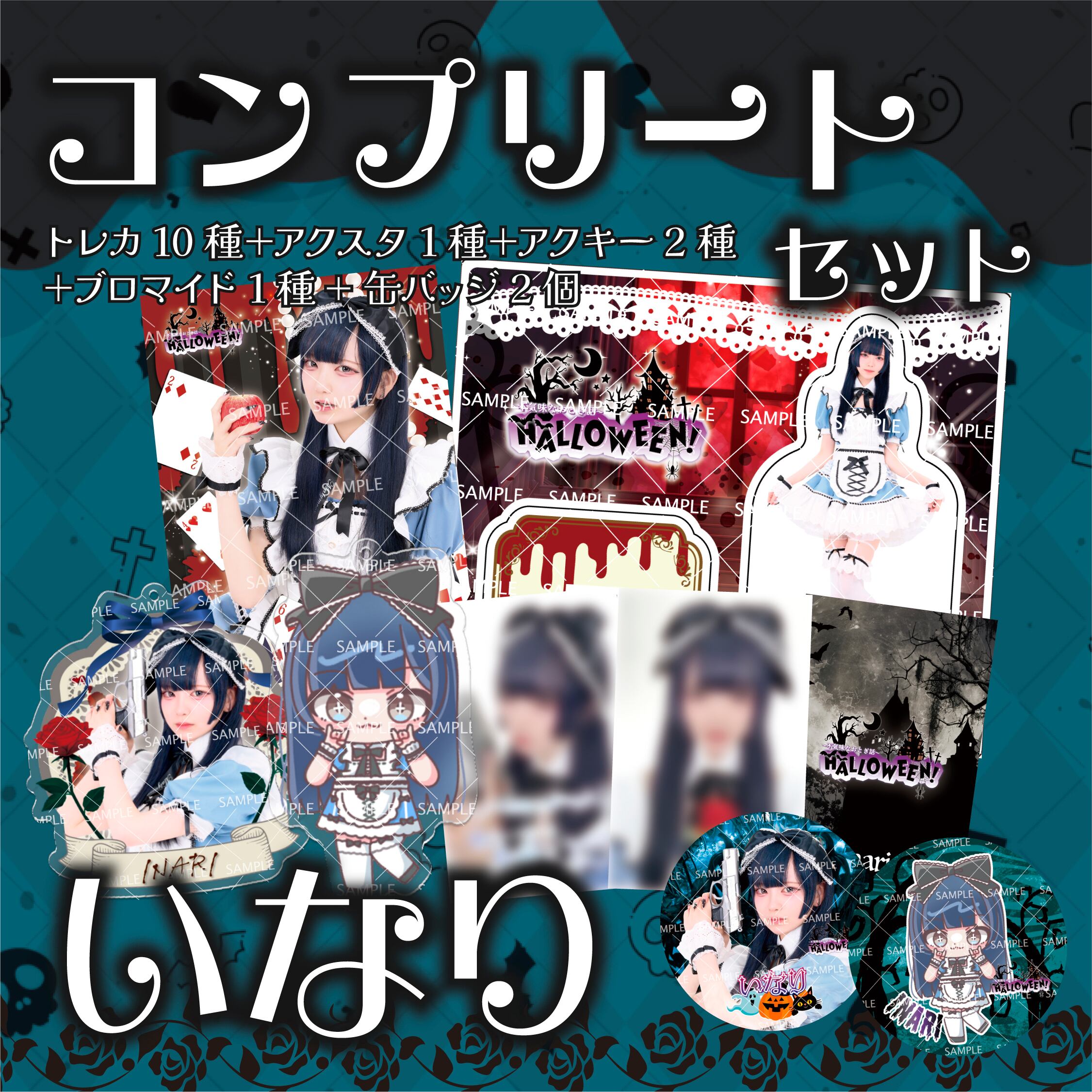 「∼不気味なおとぎ話∼Halloween!」のブロマイド1種・アクリルスタンド1個・イラストアクリルキーホルダー1個・実写アクリルキーホルダー1個・トレカ全10種・缶バッジ2種のセット商品です。