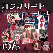 「∼不気味なおとぎ話∼Halloween!」のブロマイド1種・アクリルスタンド1個・イラストアクリルキーホルダー1個・実写アクリルキーホルダー1個・トレカ全10種・缶バッジ2種のセット商品です。