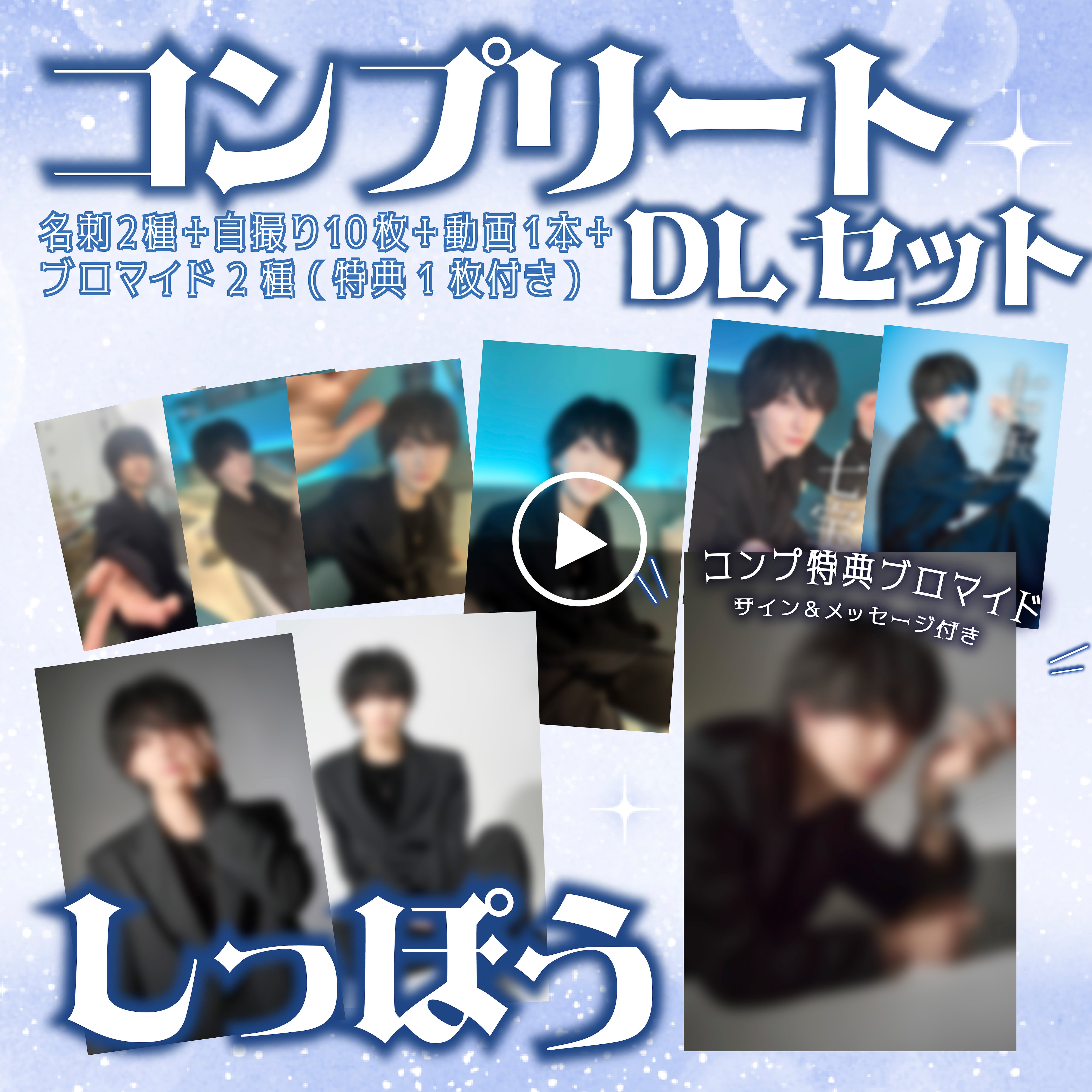 「今夜も君とシャンパンコール」しっぽうのブロマイド2種・自撮り写真10種・動画1本・名刺2種のコンプリートDLコンテンツです。