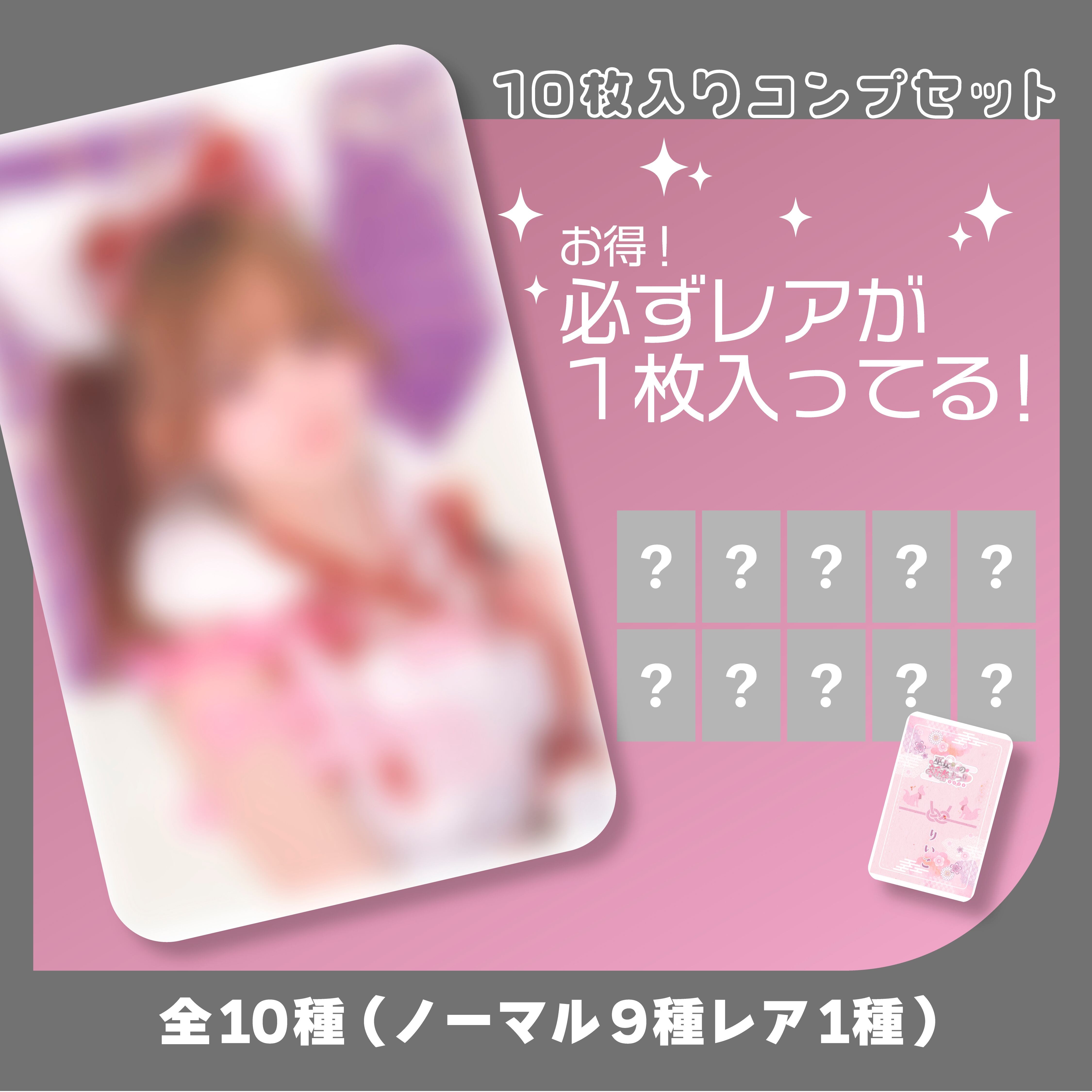 全10種(ノーマル9種・レア1種)全ての絵柄が入っているトレカセットになります。