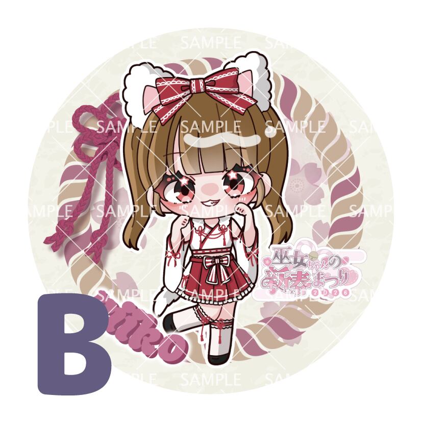 「巫女ちゃんの新春まつり2026」の缶バッジです。