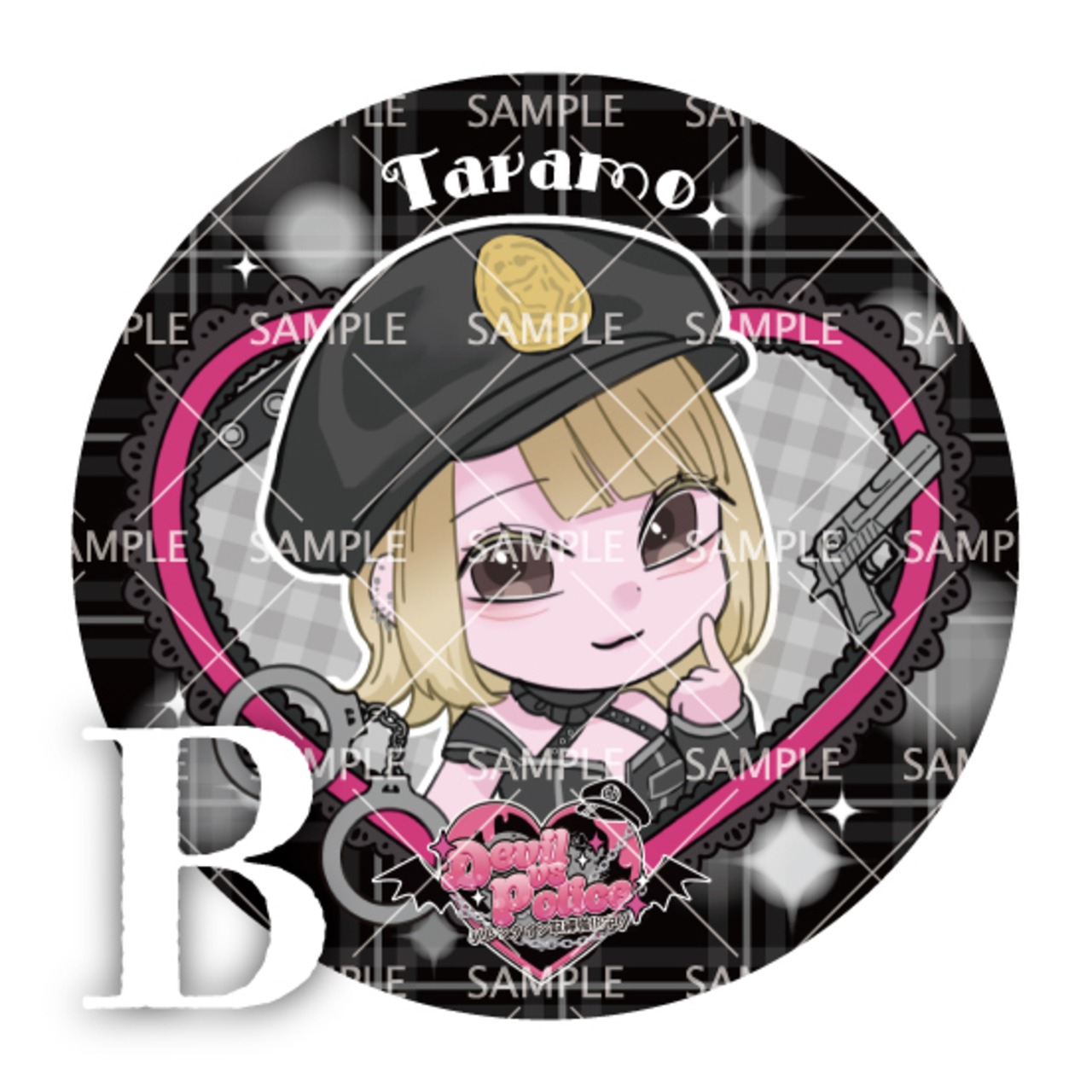 「Devil vs Police バレンタイン取締強化中!」の缶バッジです!