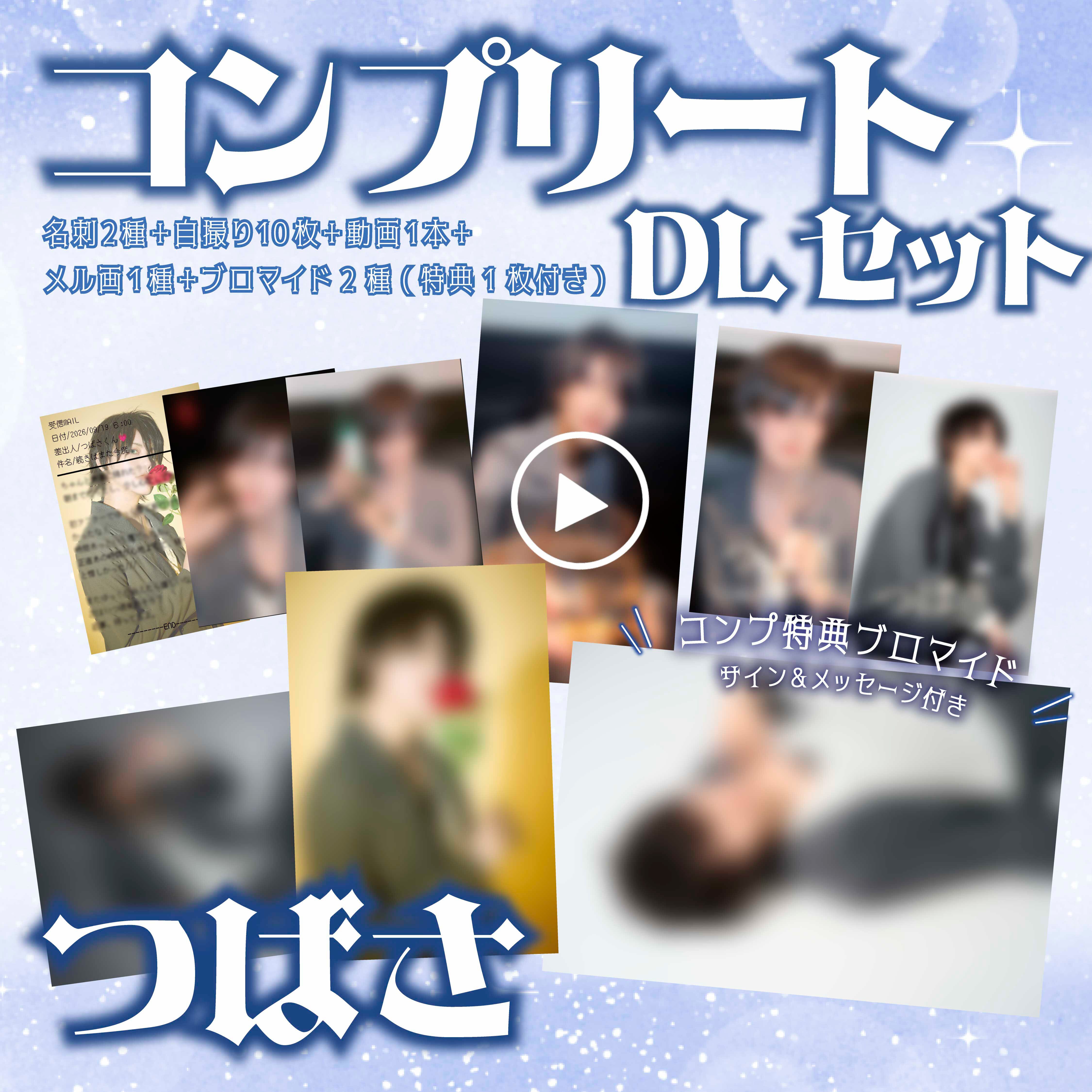 「今夜も君とシャンパンコール」つばさのブロマイド2種・自撮り写真10種・動画1本・名刺2種・メル画1種のコンプリートDLコンテンツです。