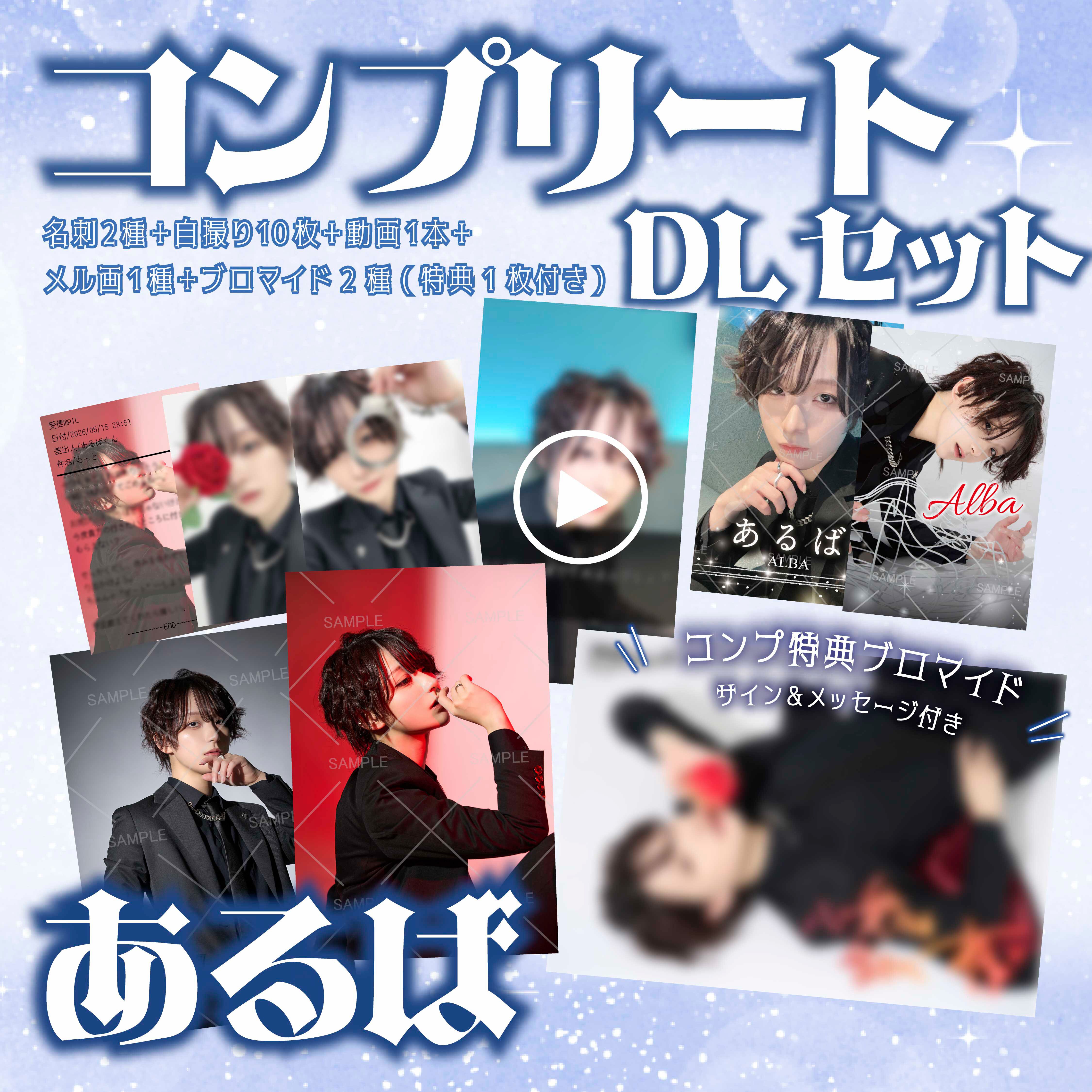 「今夜も君とシャンパンコール」あるばのブロマイド2種・自撮り写真10種・動画1本・名刺2種・メル画1種のコンプリートDLコンテンツです。